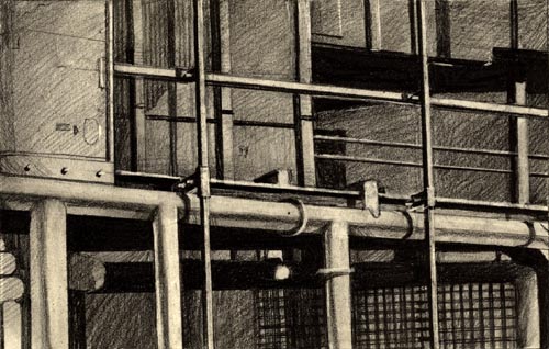 UL-B45 is an Urban Street Apparatus that houses up to 10 individuals who wish to live on the street. Built on an oddly shaped vacant lot at the busy intersection of Broadway and Houston Street—just above the Broadway-Lafayette station (B, D, F, Q, and 6 trains)—UL-B45 is a 5-story, steel platform structure that provides approximately 2,000 sq.-ft. of living and work space for the homeless.