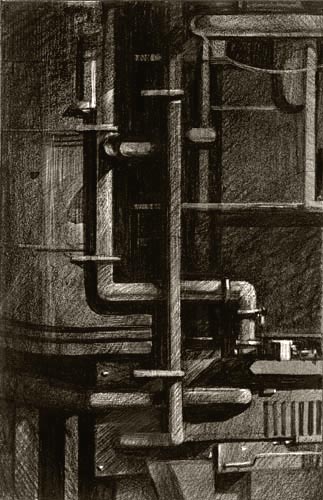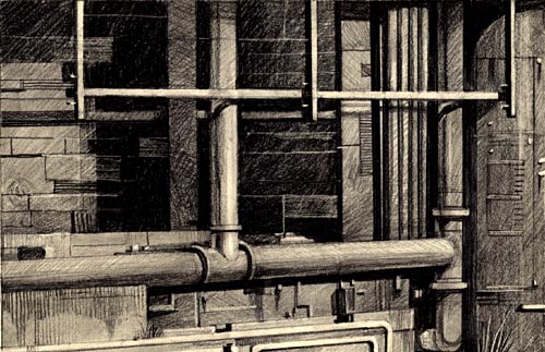 An essential feature of UL-B45 is the incinerator, which burns 2 tons of trash each day to create 35,000 BTUs of energy. A portion of this energy is transferred to a turbine to generate electricity and provide hot water and steam for the residents. The outer curtain wall provides a panel, 20 ft. x 15 ft., that residents can use as a banner to position any kind of message or propaganda.